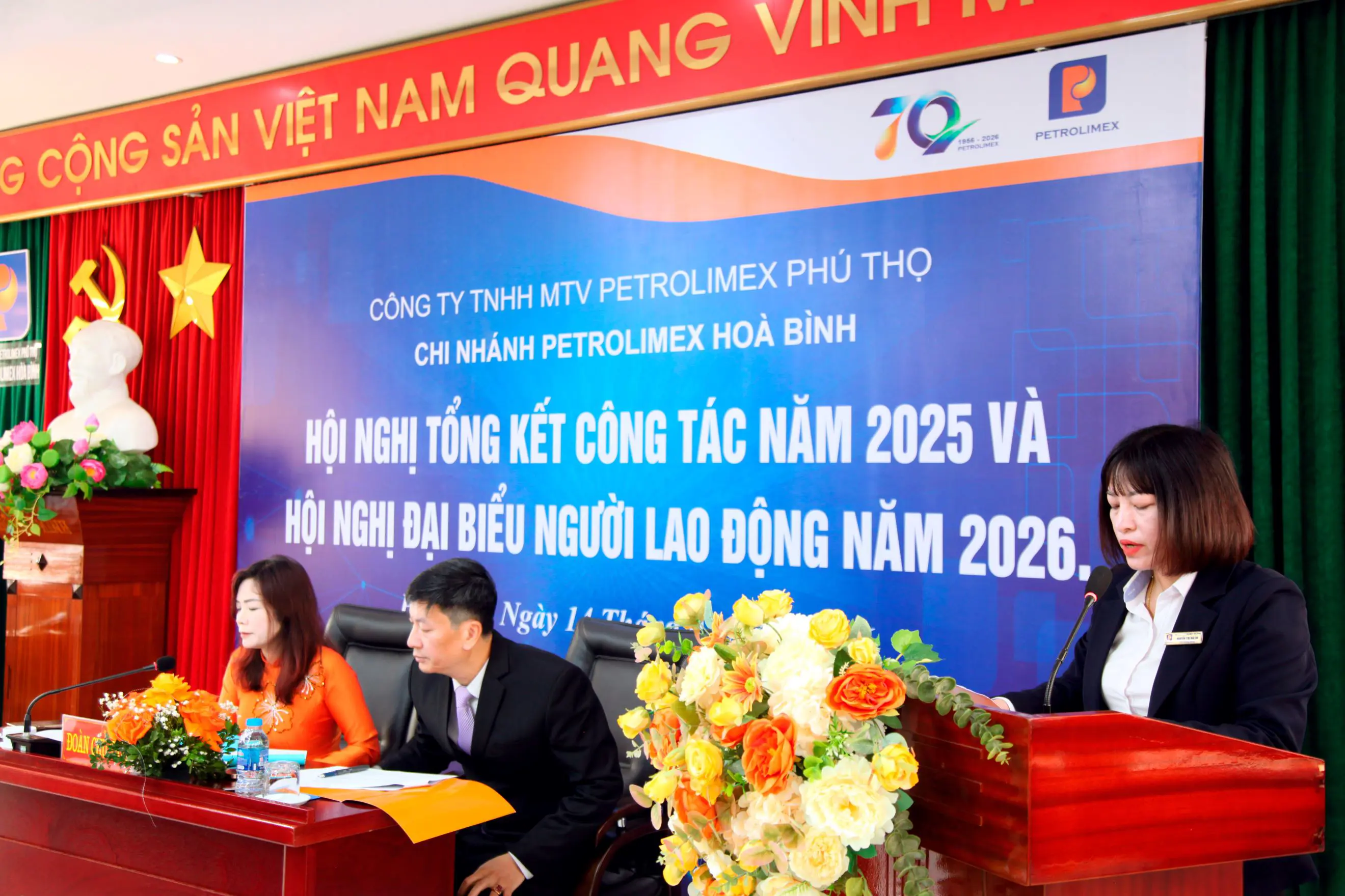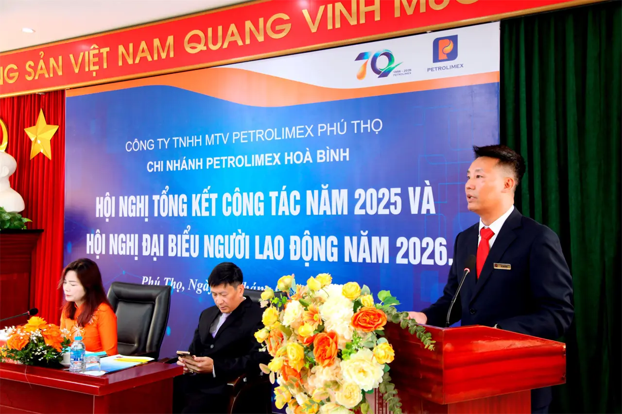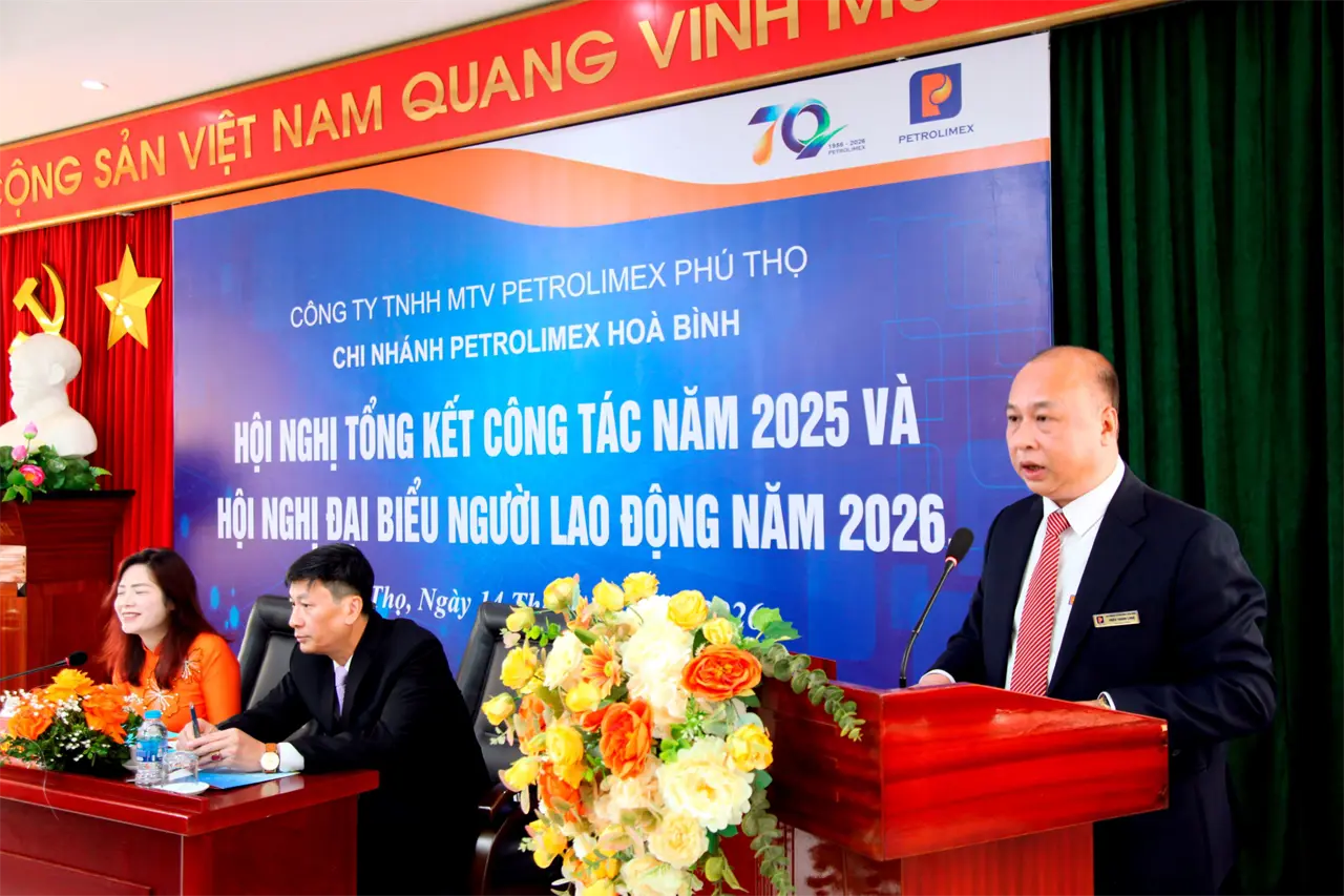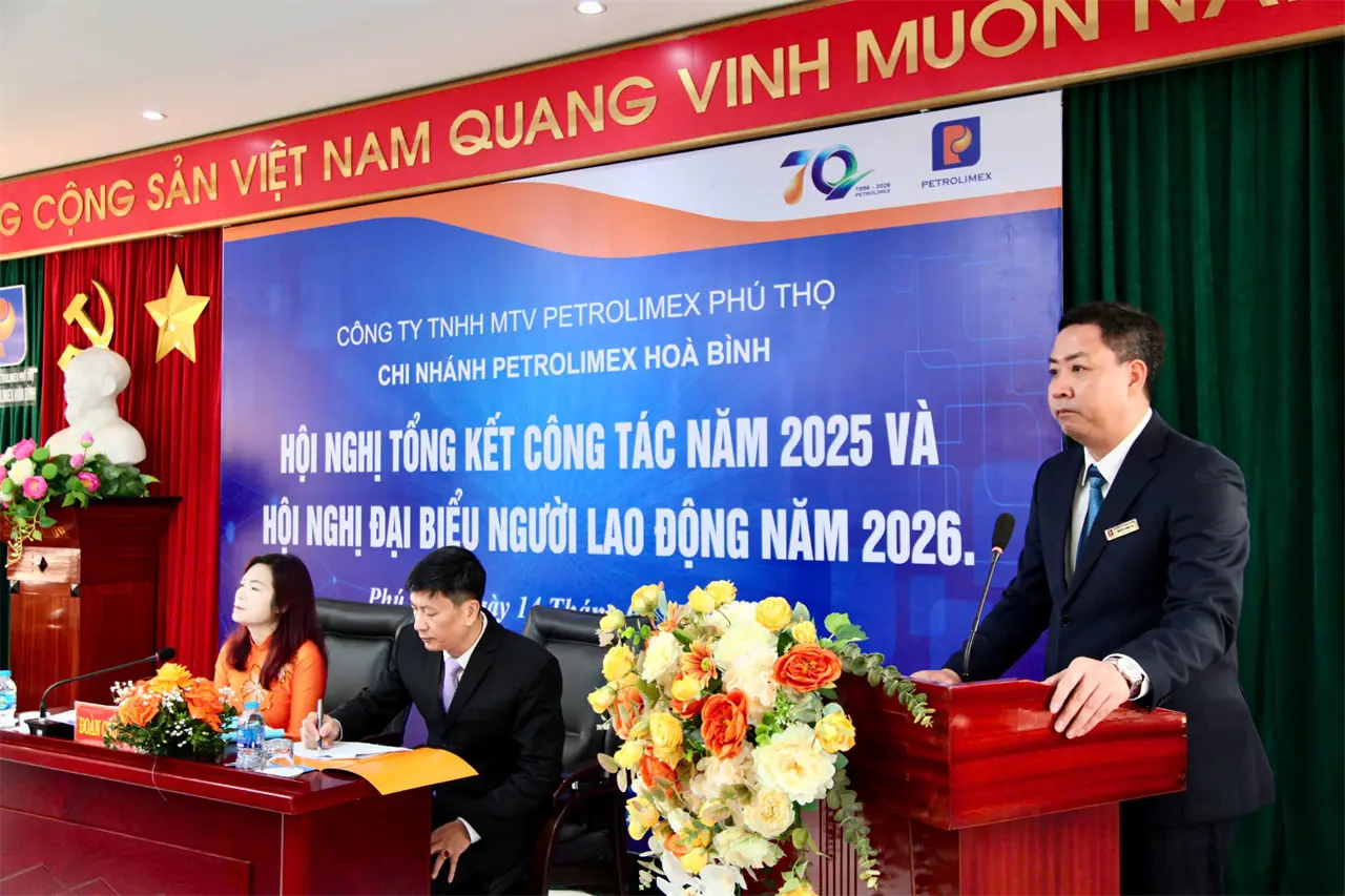 Sáng ngày 14.01.2026, Chi nhánh Petrolimex Hòa Bình (Chi nhánh) thuộc Công ty TNHH MTV Petrolimex Phú Thọ (Công ty) tổ chức Hội nghị người lao động năm 2026 và tổng kết công tác năm 2025 tại trụ sở số 1, Đường Nguyễn Trung Trực, Phường Hòa Bình, Tỉnh Phú Thọ.