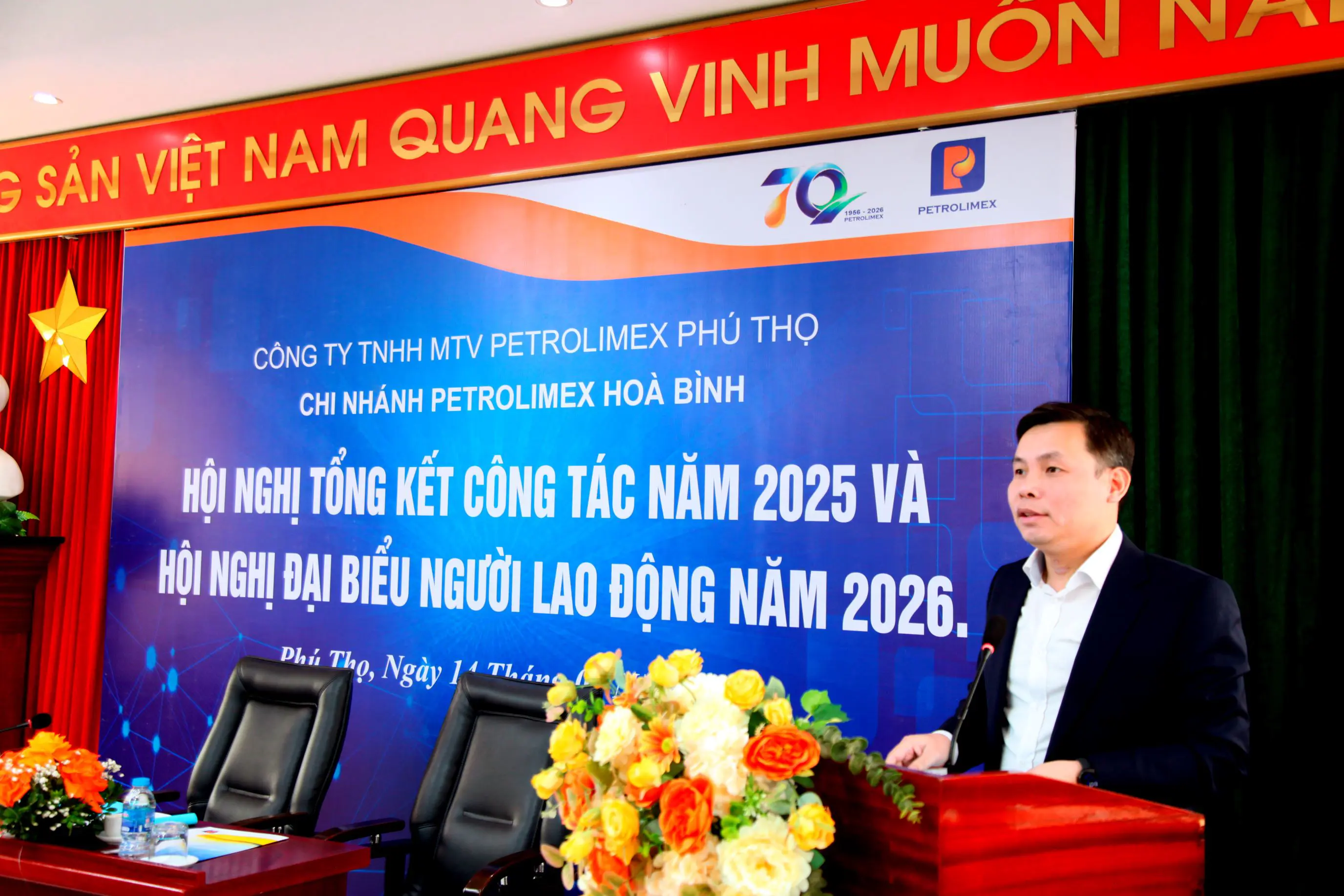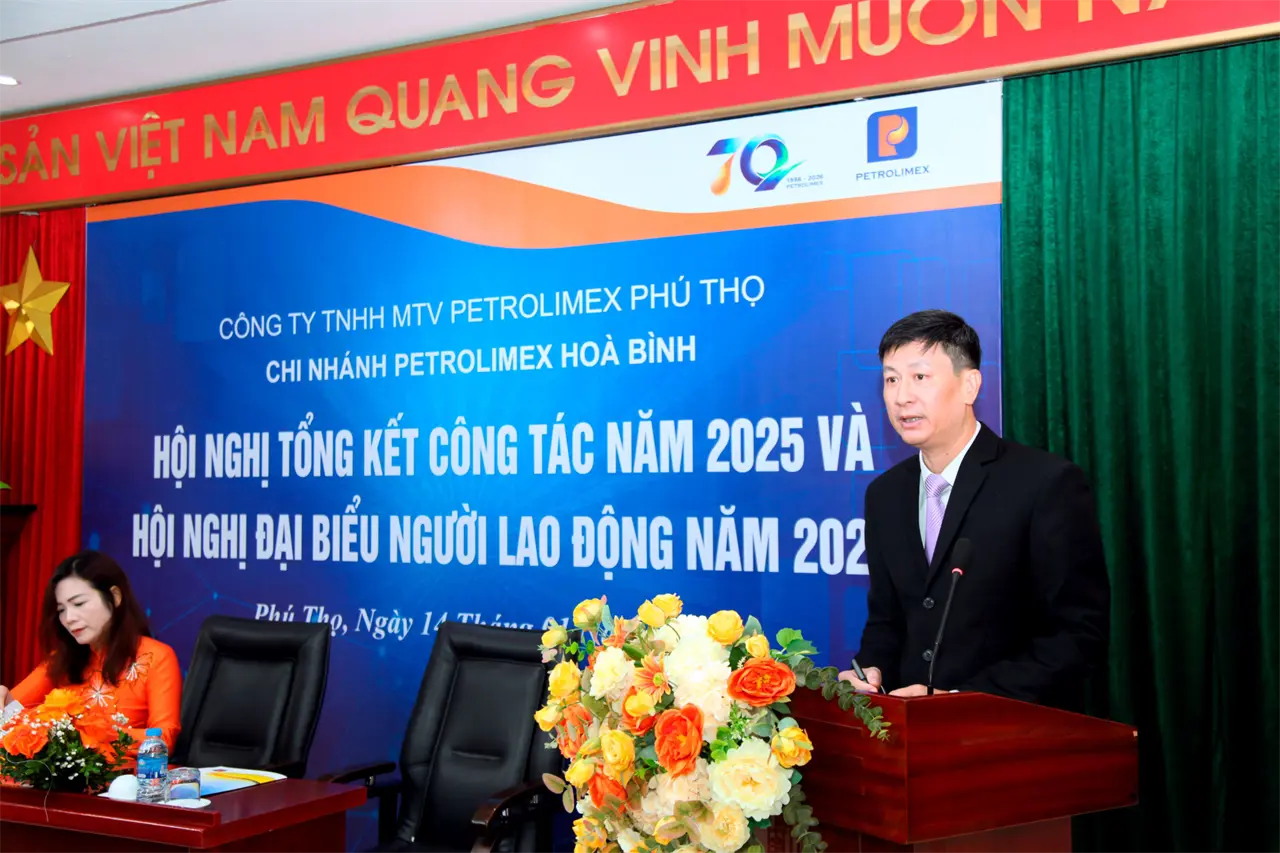 Thay mặt Đảng ủy, lãnh đạo Công ty, đồng chí Ngô Minh Tú ghi nhận và biểu dương những thành tích mà NLĐ Chi nhánh Petrolimex Hòa Bình đạt được trong năm 2025; đồng thời đề nghị Chi nhánh tiếp tục phát huy những thành quả đã đạt được, khắc phục khó khăn giữ vững và phát triển thị phần, bảo vệ uy tín thương hiệu Petrolimex, đảm bảo an toàn về người và tài sản trong quá trình kinh doanh, tiếp tục quan tâm chăm lo đời sống người lao động trong năm 2026.